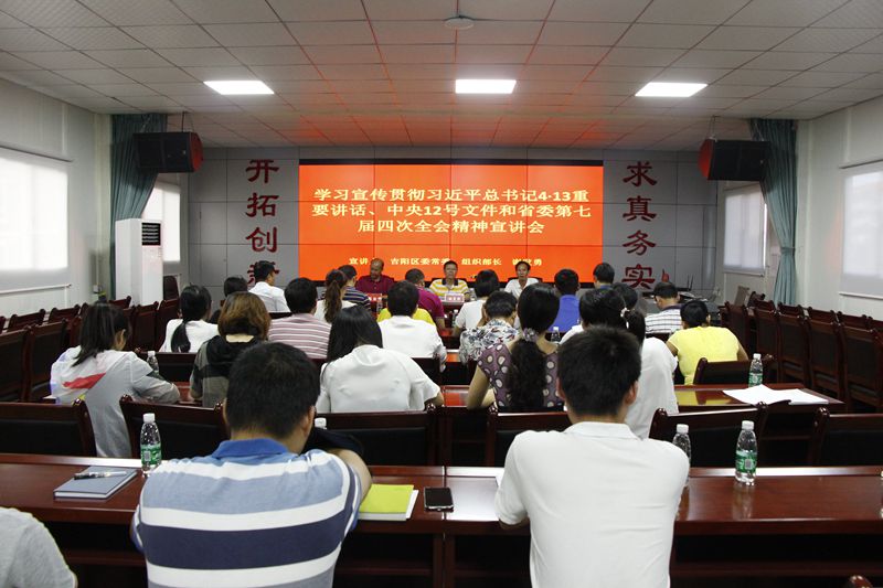 根據(jù)吉陽區(qū)委統(tǒng)一部署,學(xué)習(xí)貫徹習(xí)近平總書記“4·13”重要講話、中央12號文件和省委第七屆四次全會精神宣講會在明佳集團(tuán)三樓會議室舉行。吉陽區(qū)委常委、組織部長謝發(fā)勇作宣講報(bào)告。集團(tuán)黨支部書記、董事長陳明主持宣講會。