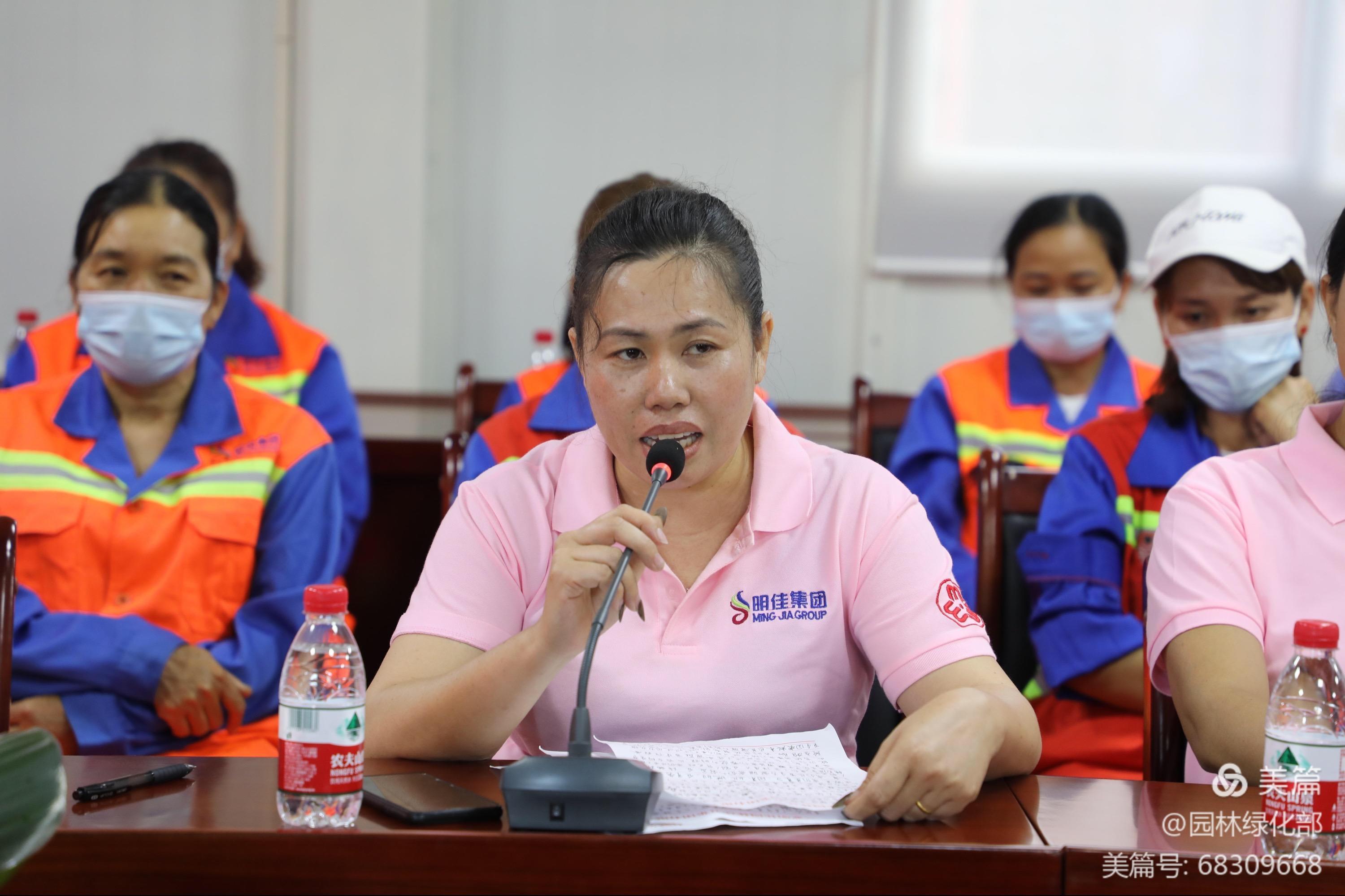 吉陽區(qū)婦聯(lián)蒲愛蓉主席、明佳婦聯(lián)熊牡丹主席及張煒珍副主席同女職工親切交談