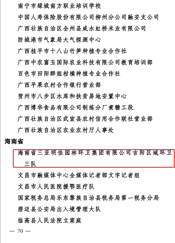 “芬芳三月,如歌巾幗。”在慶祝第111個三八國際勞動婦女節(jié)之際,三亞明佳園林環(huán)衛(wèi)集團有限公司吉陽區(qū)域環(huán)衛(wèi)三隊榮獲2020年度“全國巾幗文明崗”榮譽稱號!叭珖韼轿拿鲘彙笔侨珖鴭D女“巾幗建功”活動專設崗, 是全國婦聯為表彰積極為國家、為社會、為人民做出突出貢獻,取得優(yōu)異的優(yōu)秀婦女團體而頒發(fā)的榮譽稱號。